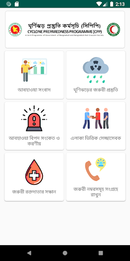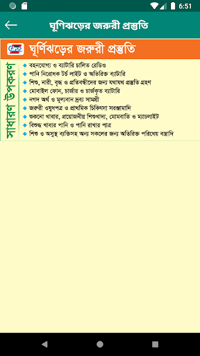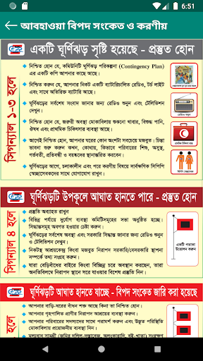You can check 1. Weather News 2. Warning about storm 3. What to do in bad weather 4. Volunteer list 5.blood dooner list 6. Emergency number .
