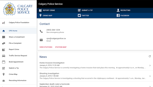 The Calgary Police Service strives to preserve the quality of life in our community by maintaining Calgary as a safe place to live, work and visit. Download our app to have easy access to everything you need from the Calgary Police Service right from your mobile device. In an emergency, always call 9-1-1.