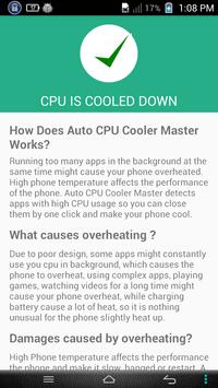 Auto CPU Cooler Master is designed to monitor the CPU usage of your phone, and detect apps with high CPU usage so you can close them