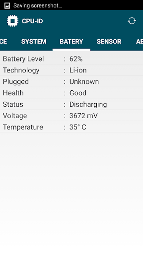 - BATERY: Level%, technology, health, voltage, temperature, etc.