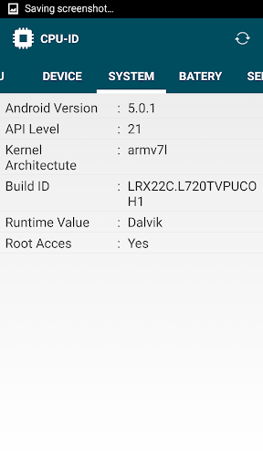 - SYSTEM: Android version, API level, kernel, Build ID, Root Acces, etc.