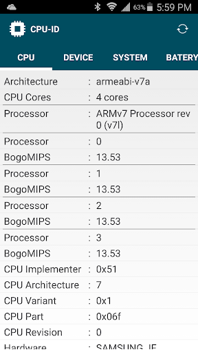 Simple method to check their device information.The application provides a very simple user interface that easily notifies and reports information about their device.This application will test the device for root Check available under tab: System.