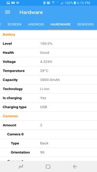 Get complete information about your device model, CPU, GPU, memory, battery, camera, disk, network and operating system.