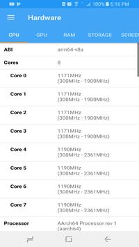 ★ Hardware: displays all detail about your SOC, CPU, GPU, Memory and storage, including chip names and manufacturers, architecture, processor cores and big.LITTLE configuration, manufacturing process, frequencies, governor, memory type and bandwidth, storage capacity, resolution, OpenGL, and panel type.