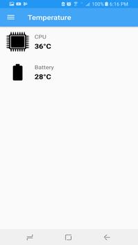 Full System Info app will monitor cpu temperature and frequency real time. Cpu monitor provides many kinds of tools. including: Ram widget, Battery temperature monitor, CPU temperature info, Sensors info, You can monitor the ram, cpu and battery information very convenient.