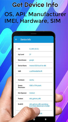 1) Device Details : This will include info about Os, Api Level, device name, manufacturer, IMEI, hardware, bundle ID and device id