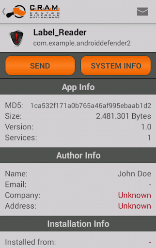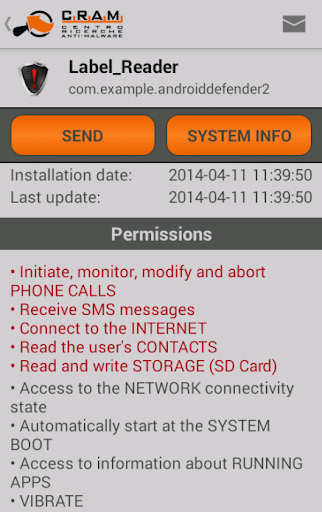 Finally, it is also possible to send the list of apps installed on the device to the CRAM (Anti-Malware Research Center) of TG Soft for the analysis, in case you suspect the device is infected with some malware. The CRAM researchers will analyse the list of installed apps, giving priority to those cases in which some potentially malicious apps are found.