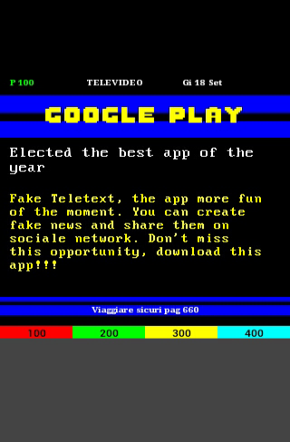 You can create fake news faithfully reproducing a teletext screen or create simple messages for fun with friends or relatives.