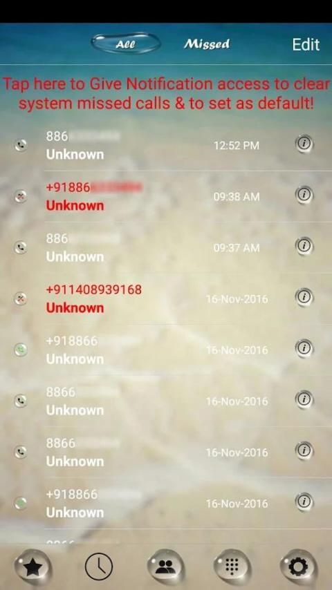 Recent contacts can be filtered with All and Missed Calls contacts. and it supports quick tap dial.