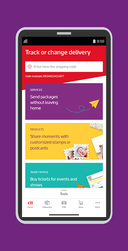 In the new CTT App you can manage your deliveries and shipments, pay tolls, buy tickets for shows and find the closest CTT store to you , among other solutions.