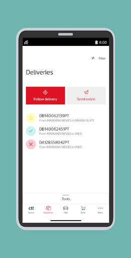 - Access to other CTT Apps such as: Via CTT, Same-day Express service, Online Receipts, Banco CTT or Dott.