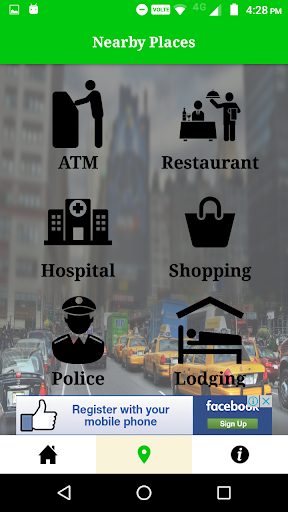 • Get Nearby places like ATM,Restaurants,Hospitals,Police etc.on map.