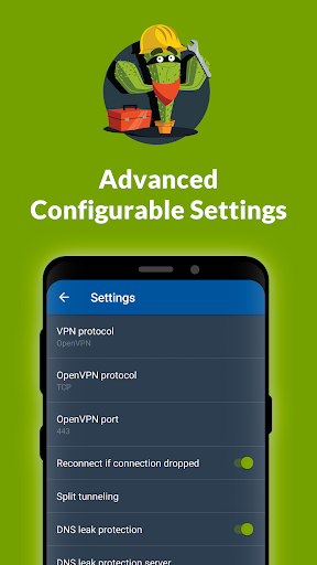 1. Enjoy our VPN service directly from your Android device. Simply choose the VPN server location and tap the "Connect" button. You can set the app to sign in at app start, to connect VPN on sign in, to hide app on connect, to choose which apps connect through VPN and which directly to the Internet, to reconnect if connection drops, to protect you from DNS leaks.