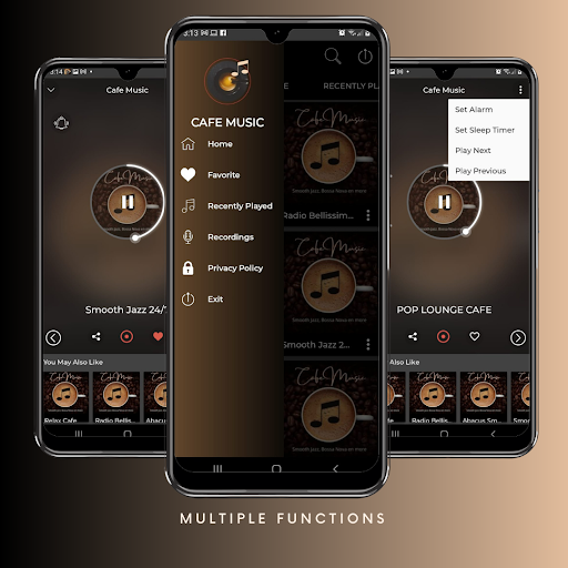 This music app is loaded with numerous radio streamings with a variety of Cafe Music radio stations transmitted 24/7.