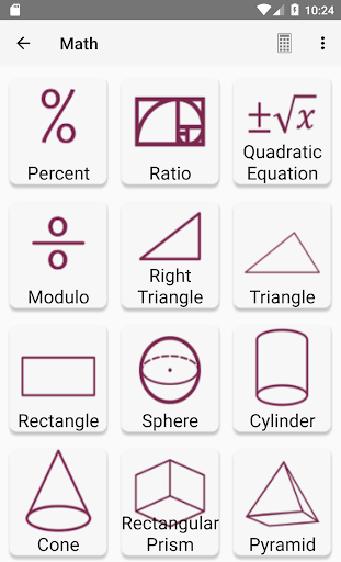 A collection of easy to use calculators designed, written, and maintained by students at Brigham Young University - Idaho. Uses very little device storage and is lightning fast. Includes calculators for shopping, cooking, travel, sports, finance, geometry, math, statistics, science, and computing.