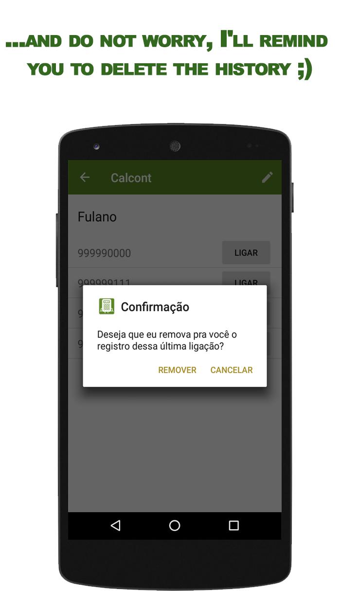 * The application does not prevent data records from appearing on your phone bill, just remove the call log from your location.