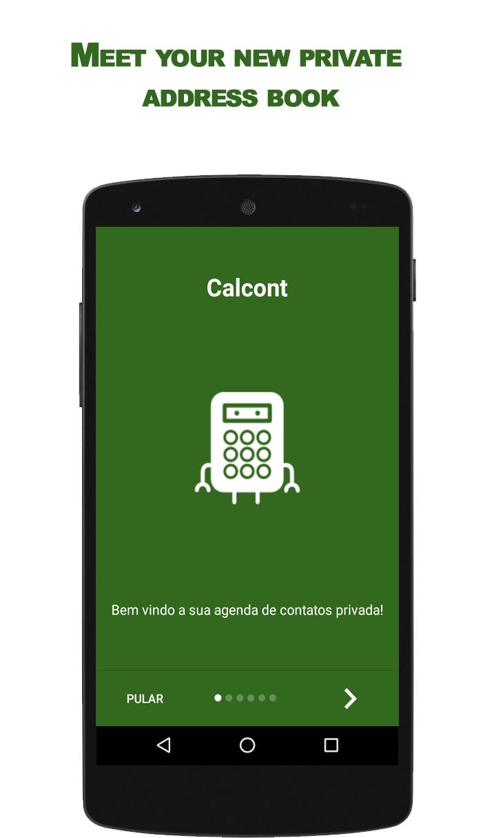 Calcont is a secret contact book. Here you can send and receive messages via WhatsApp to your hidden contacts, right from the application, without the need for the contact to exist in your official phone book!