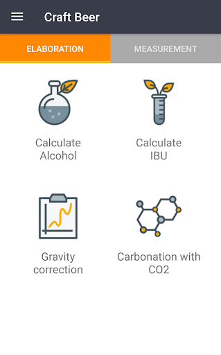 The application currently has 5 modules divided into 2 sections, elaboration and measurement, to facilitate the calculations in the production of Craft Beer