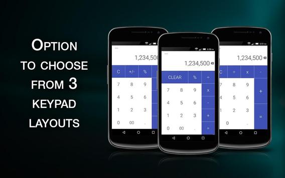 This "calculator" app is very easy to use, there you will find everything that you may need in the calculation. The calc is convenient and is not loaded with unnecessary features that will not be needed in everyday life. In addition, your pocket calculator may look as you want. You can always change the background color of your calculator, if you tired of old one.We offer to you a stylish design, easy to use, support for multi-window mode, the ability to change the backgrounds skin applications.