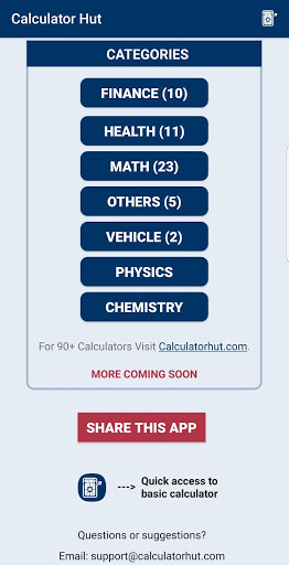 From EMI to simple Interest, from Ratios to Permutation and Combination, from Lean Body Mass to Body Mass Index, from Discount to Battery Life, all calculators in one app for free. minimal ads, no distractions. 100 Calculators for free to use