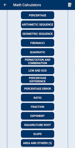 EMI or loan, GST, percentage, discount, simple interest, Fibonacci, quadratic equation solver, salary, ratio, percentage differences, fractions, arithmetic sequence, body mass, age, lean body mass based on fat and many more