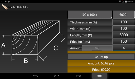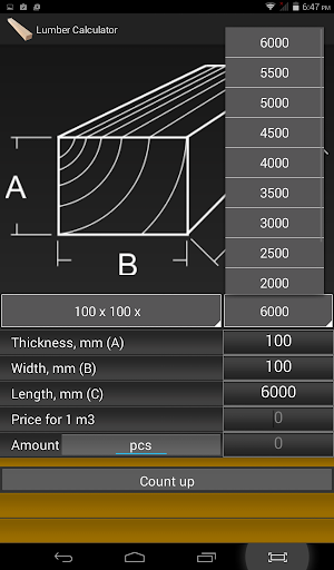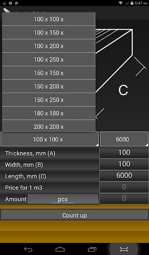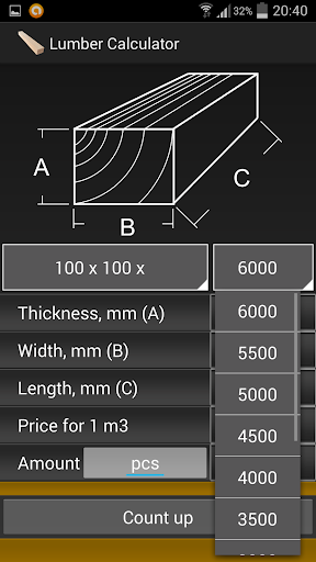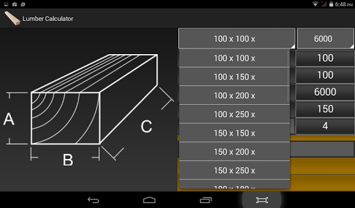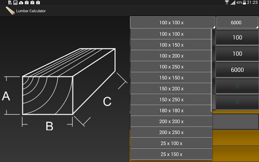 Quick selection of standard size timber / boards