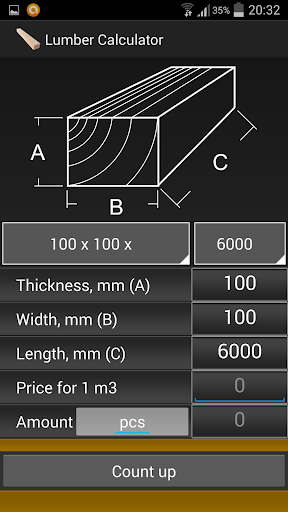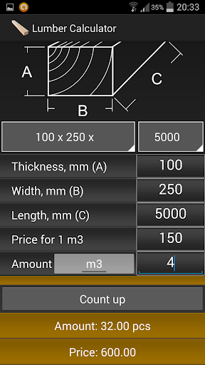 Calculation of volume (cubic meters) boards, given the size of the board and the number of