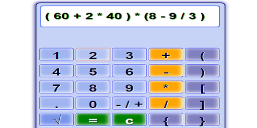 Matematica Calcolatrice con parentesi tonde, quadre e parentesi graffe. Calcolare, aggiungere, sottrarre, moltiplicare, dividere i vari numeri positivi o negativi. Risolvere la matematica, aritmetica, algebra, geometria o problemi equazioni.