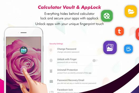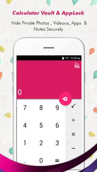 Prying eyes Know which App lock you are using and may uninstall to break your security. This app locker is designed as simple calculator. Calculator vault - Gallery Lock app open only by secret code that is set by you other wise it functional as simple calculator. This way no one knows your mobile had installed gallery lock and you can secretly hide pictures to keep safe from others by this Smart Calculator.
