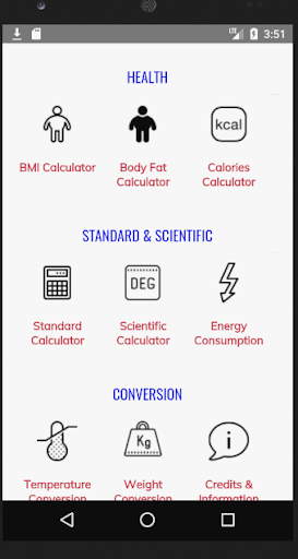 This is one App that meets all your calculation needs. Has calculation on Finance, Health, Conversion, Standard calculator, Scientific Calculator. This is a free version and will be updated once in while. To experience Ads free and more additions lists, please download the Pro version of this calculator. The advantage of Pro version is most of the calculators are offline and does not need internet for its function.