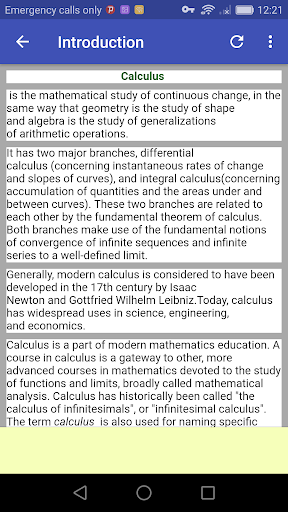 This App teaches you the basics of calculus from the definitions to the application of limits, differential calculus and integral calculus.