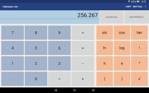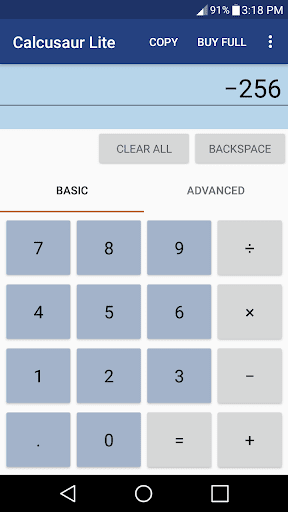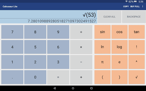 Calculator that evaluates input using the order of operations. It works with keyboards. Like most of my apps the install size is under half a megabyte. Precision: 32 digits