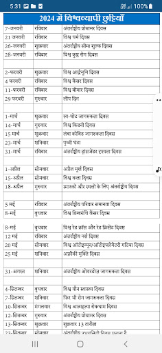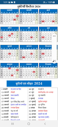 • The holiday calendar is the 2024 calendar. In which the information about the Holidays of the whole year is given with full details.