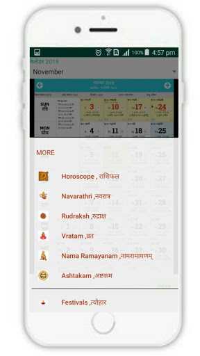 , Amavasya vrit , Vinayaka Chaturthi, Maha Shivratri, Navarathri and much more. The app has a set of Astakams which is written in Hindi. App has the list of Hindu Festivals.