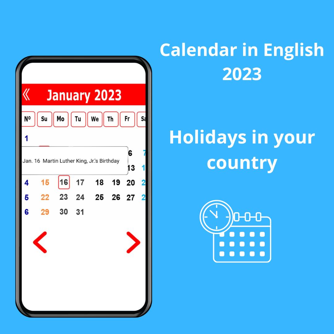 Download the new application for free. Calendar in English 2023, available for Android devices.