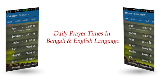 on home screen you can see all the prayer times and date on English, Bengali and Arabic