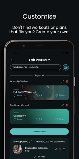 - Customize every aspect of your training - create custom exercises, workouts and training plans. Browse library of more than 300 bodyweight exercises and 100 workouts. You have complete freedom on how to plan your trainings.