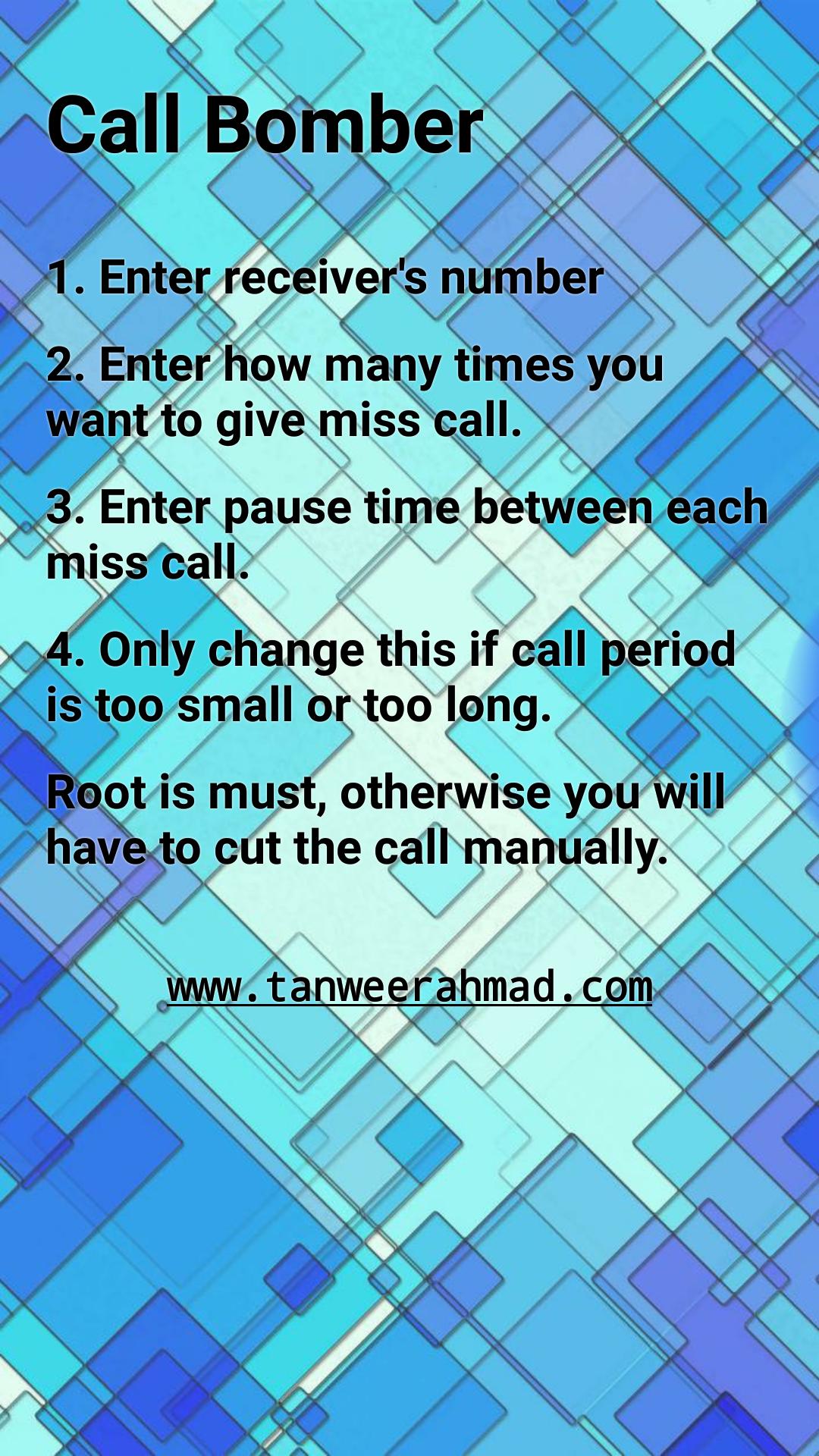 Prank your friends, give them time to time as many missed calls as you want using this Call / Miscall Bomber App :D