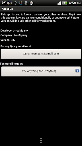This app is used to forward calls to your other numbers. You can choose a number from your contact list and can forward calls to that number.