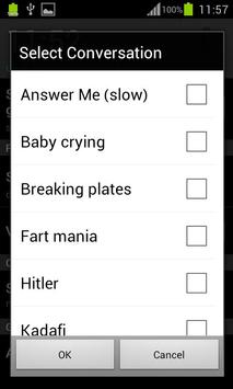 * Select one of our built-in conversation sounds to be played after answering the call. great way to prank people!