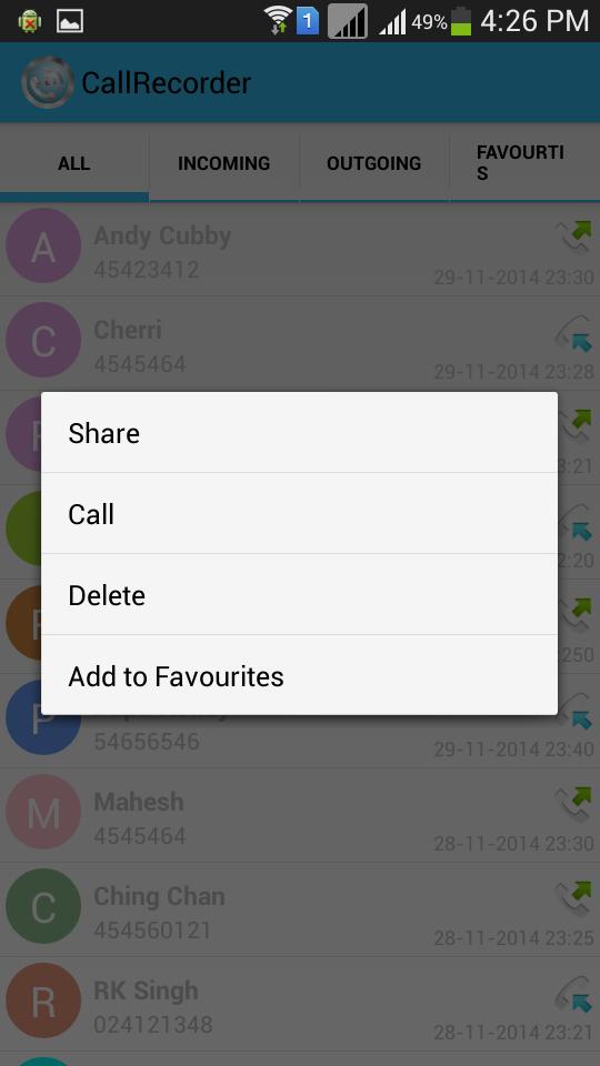 ★ Favorites – Call Record enable only for selected contacts.