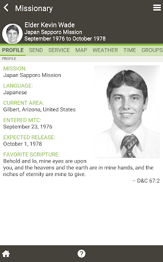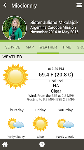 Called to Serve lets you track when all of your Latter-day Saint missionaries will be returning, down to the second, and local weather information including a 4 day forecast; no more wondering if they are hot or cold.