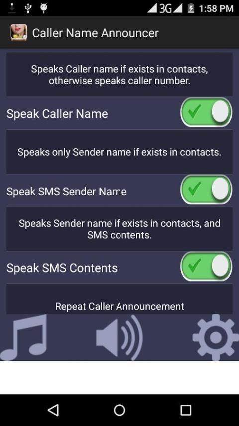 --Speaks the whole incoming SMS contents and sender name --You can Enable/disable speaking caller name