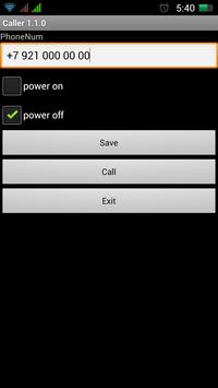 The program can make a call to the configured phone number when connecting or disconnecting the external power supply. Settings dialog opens widget program.