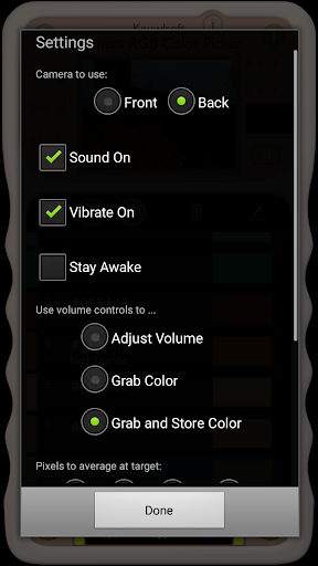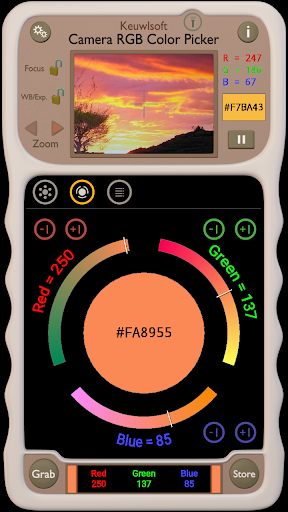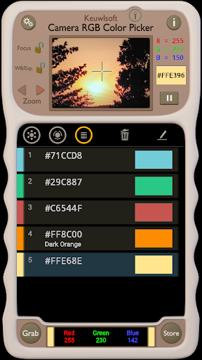 Pick, tweak and store RGB colors grabbed from the camera preview.