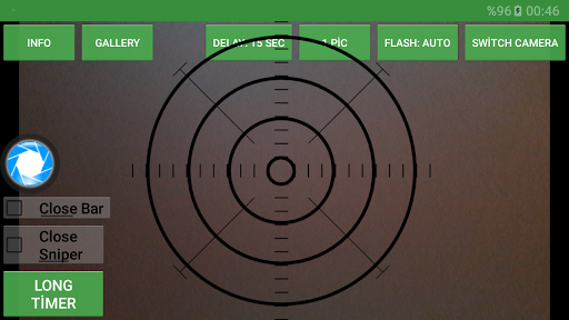 Camera Timer takes photo and shares it with friends more easily.You can set a countdown before taking pictures at a time upto 24 hours. Including the number of shots in a continuous take. And Calibrating shutter scope by sniper. Camera Timer is the simple camera with a self-timer function. You can save and share the photo's which you like it and show it in order in the gallery. Camera Timer is the popular camera app in market that allows you to delay the shutter release for adjusted time and giving you time between pushing the button and taking the actual photo in clean filter.