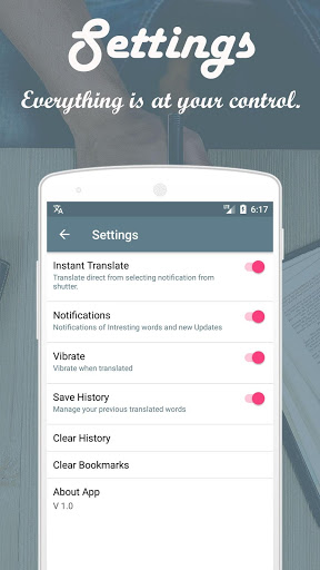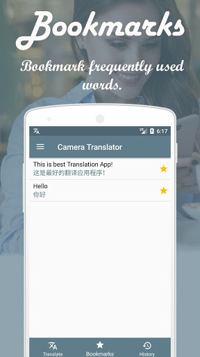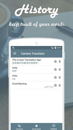 You can also use Voice Translator Facility of this Voice Translator to translate text. This Voice Translator App also features bookmark and History features to keep track of your translated words.