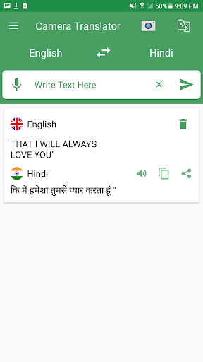 helps user to translate text into all languages. This camera translation scans text from images and the in one click converts into desire language. Translator app helps in translation of words from images to any language.