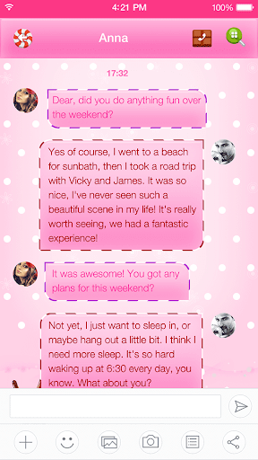 Decorate your Messages with tons of colorful and stylish Messages Themes(keep increasing). An awesome way to turn a plain Messaging app into a beautiful and unique one. Personalize Messages in your own way.