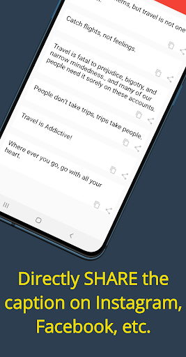 Captions for Pictures keep update-to-date captions, quotes, messages, or status so that our users can use trends and best social media captions anytime they want, and have more social involvement on their profile and accounts.